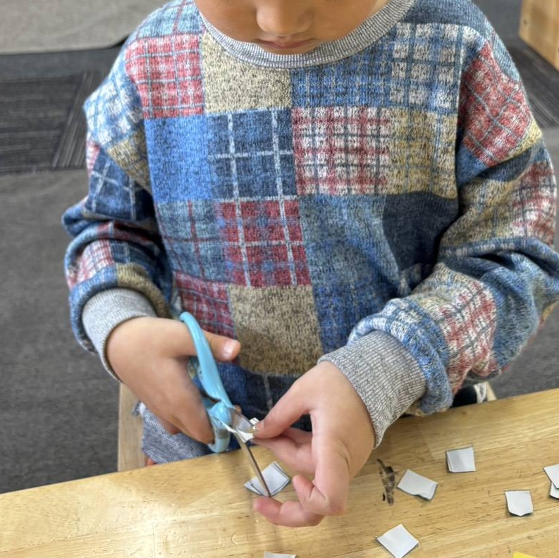 年長・年中児は自分で切って台紙から準備してもらいました。お花やキラキラ折り紙など素材は用意しておいて、好きな物を貼ってもらいましたが形も色も何を選ぶか、どこに貼るかで、みんな違って個性的な作品になりました( *´艸`)