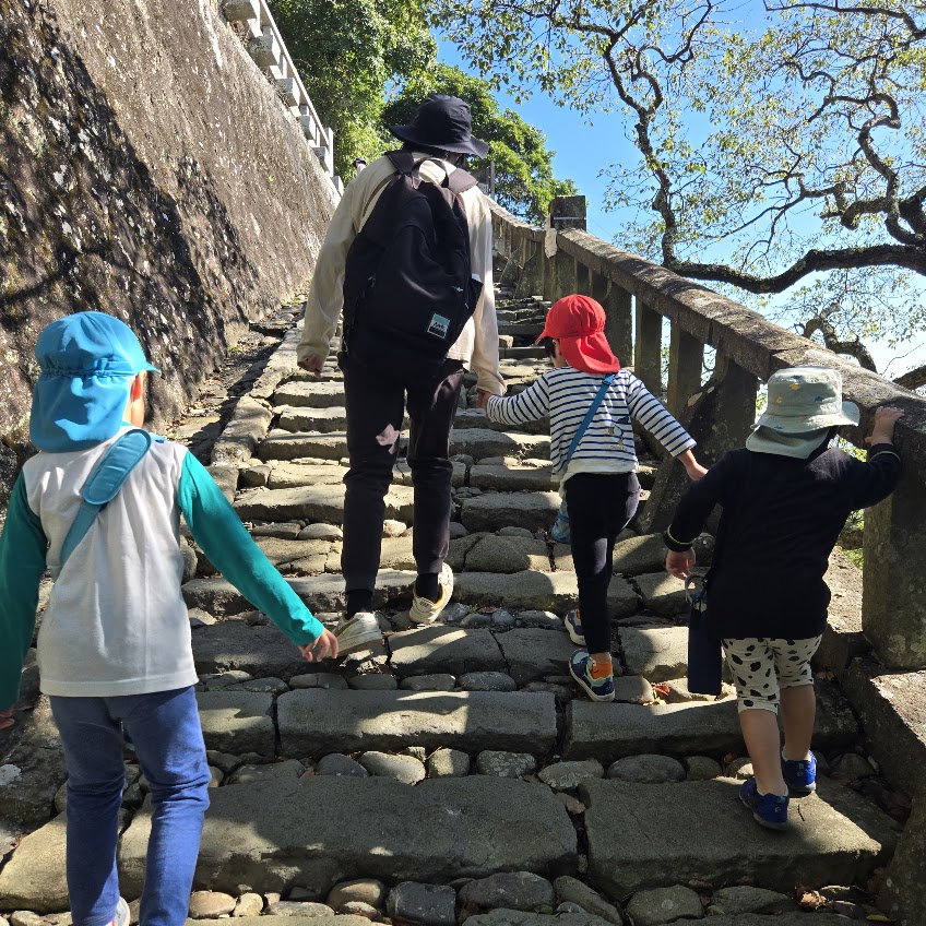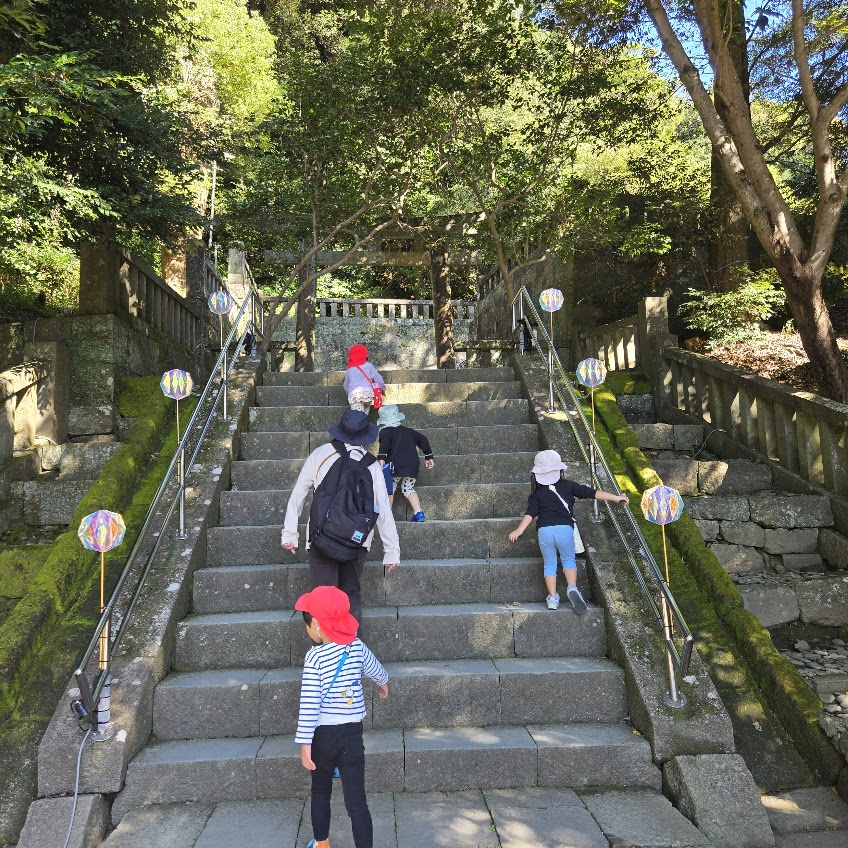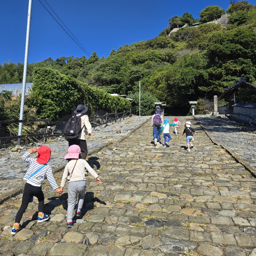 一つ一つの階段が高めで、浅間さんよりも高い場所にあります。さてっ行くは良いけれど、年少・年中さんは大変かな…体力など考慮すると年長さんだけかな~と最初は話していました。前日 人数的には行けるけど、どうしようか最後まで迷った結果、本人達に聞いてみることに!(^^)!